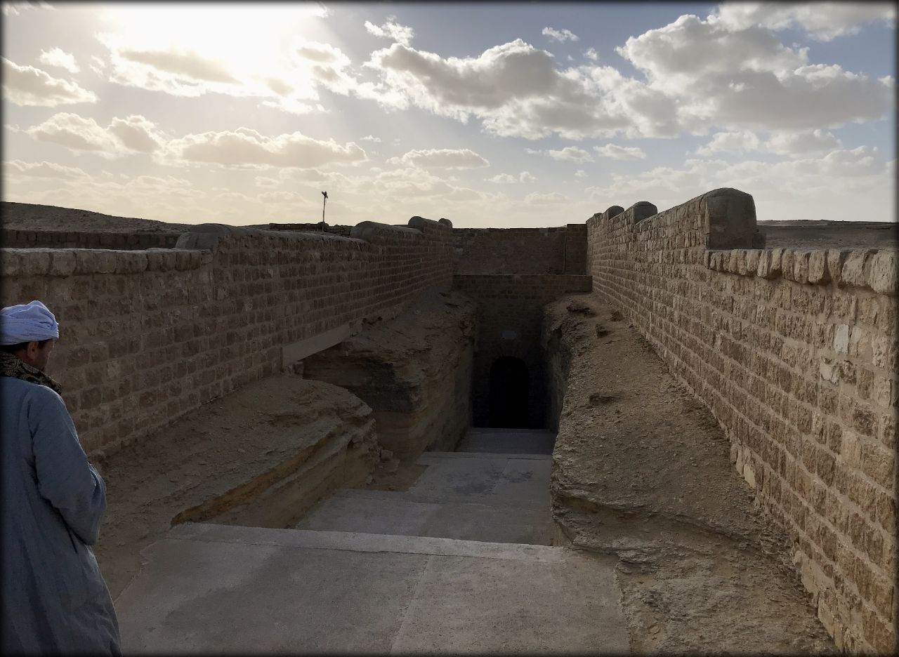 Финальной точкой в нашем историческом маршруте был загадочный Серапеум. Он находится в небольшом отдалении от пирамиды Джосера и нам пришлось бежать чтобы успеть его посетить. За десять минут до закрытия мы были последними посетителями. Подошли к входу и спускаемся вниз.