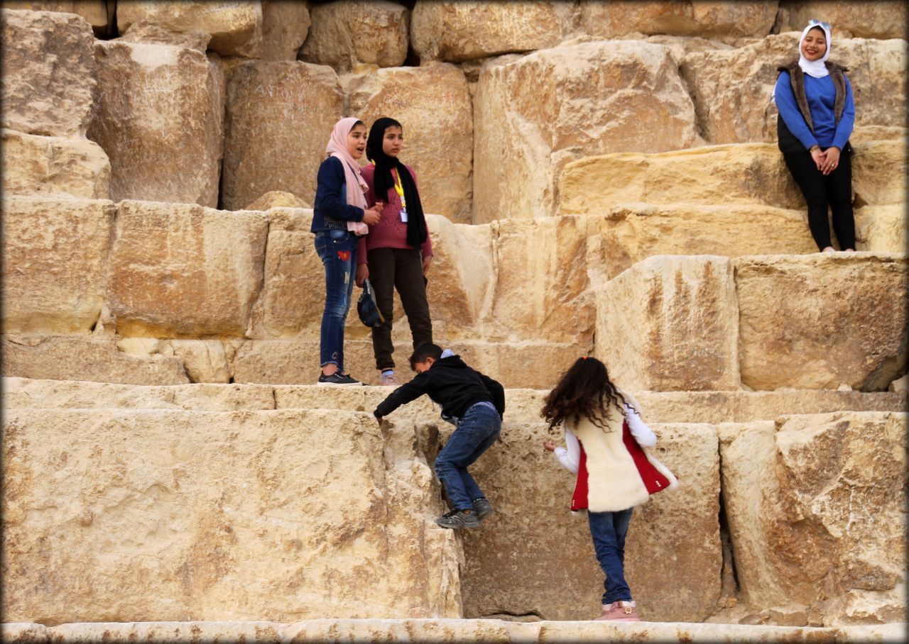 Туристам это категорически нельзя делать. Нам сказали что штраф если поймают составляет 5000 долларов. Не так давно (в 2018 году) на единственное оставшееся с древних времён чудо света — пирамиду Хеопса, залезли двое датчан и выложили в сеть обнажённые фото. Говорят что они там ещё и любовью занимались. Для исламского Египта это было двойным оскорблением. Вот из-за этой европейской парочки и ужесточили правила.