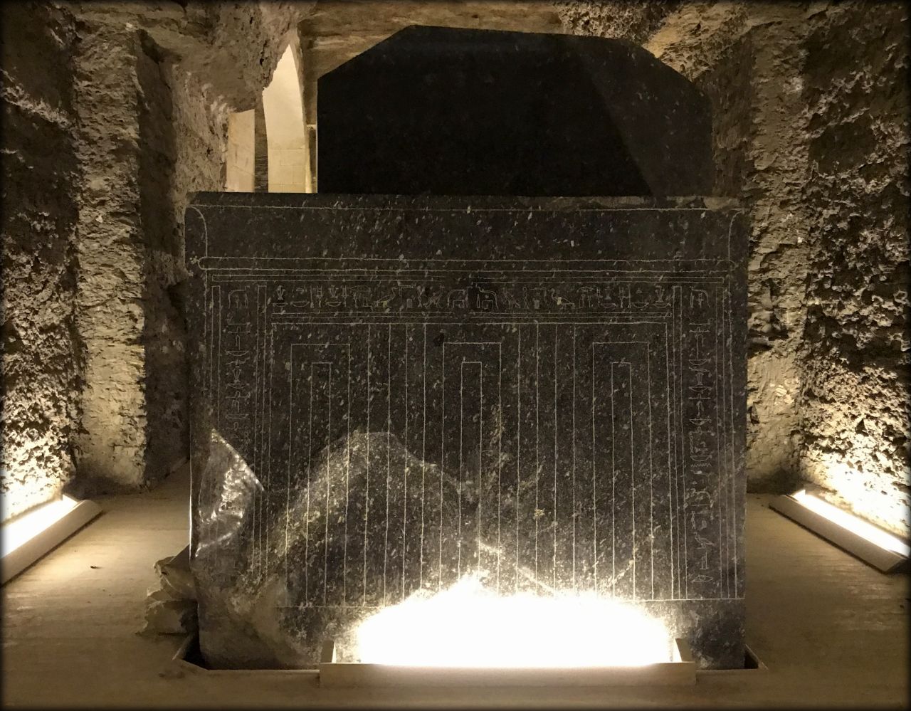 Внутри саркофагов стенки абсолютно плоские, без сколов и прочих погрешностей обрабатываемой породы. Стенки внешней поверхности зачастую имеют сколы и выемки, поверх которых производилась полировка поверхности изделия. Нам снова повезло. В отсутствие посторонних глаз, за небольшую плату охранник разрешил нам снимать все саркофаги, спускается к ним и трогать руками. Место фантастическое.