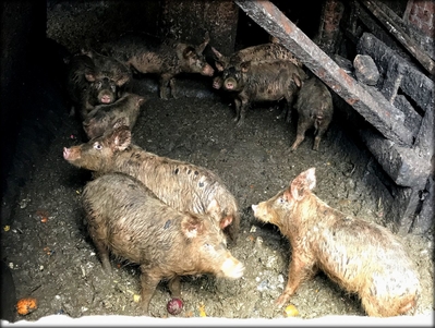 В детстве я часто в селе у бабушки кормил и убирал за этими домашними животными. Да, у них всегда грязновато, но то, что я увидел здесь это вообще полный треш. Хотелось выпустить этих хрюшек на волю, но потом вспомнил, что весь квартал такой, поэтому пришлось извинится перед ними сославшись на судьбу.