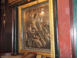 В церкви хранится чудотворная икона Святого Георгия, образ не пострадал во время пожара, когда церковь сгорела почти полностью, а греческие священники говорят, что иконе не менее четырнадцати веков.