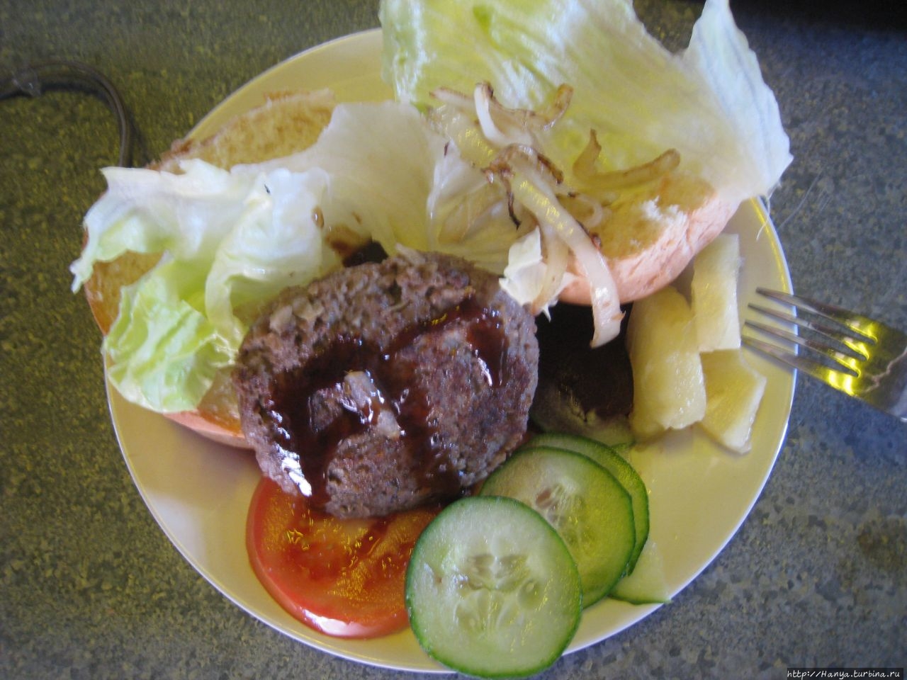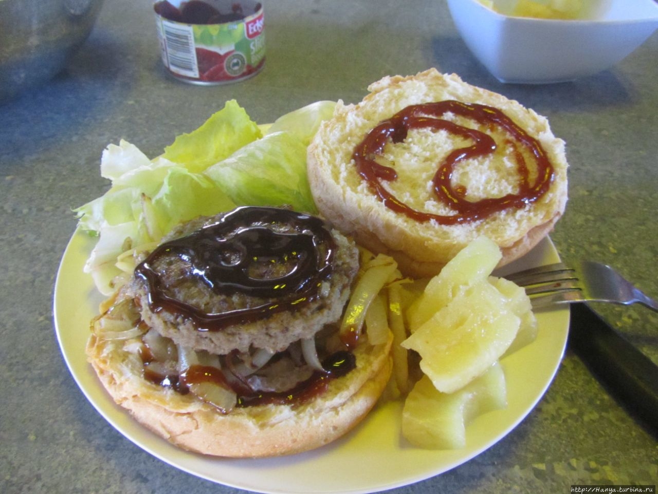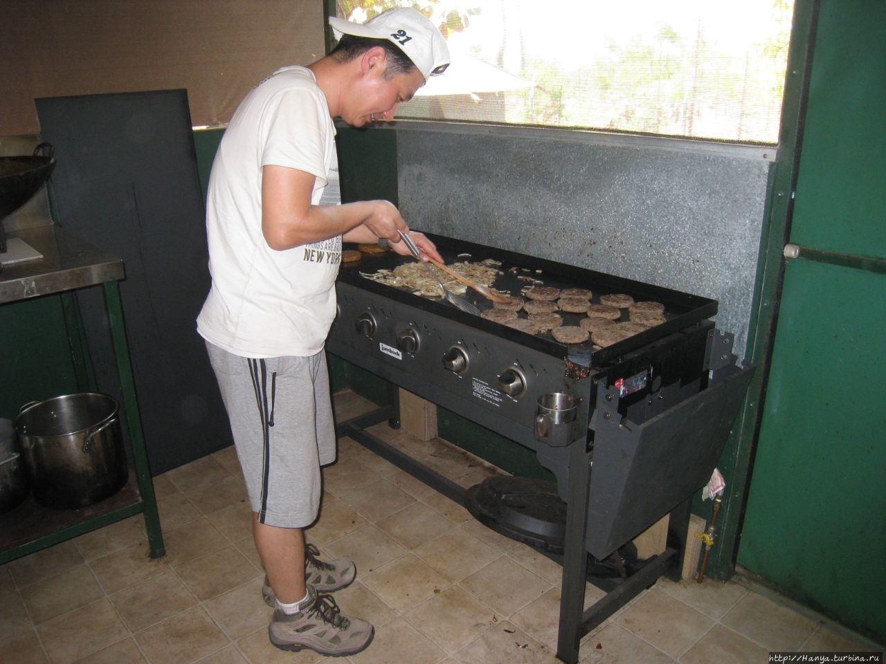 Ланч снова состоит из гамбургера, котлету для которого и лук в изобилии жарил наш незаменимый Чарли, добровольно вызвавшийся делать это.