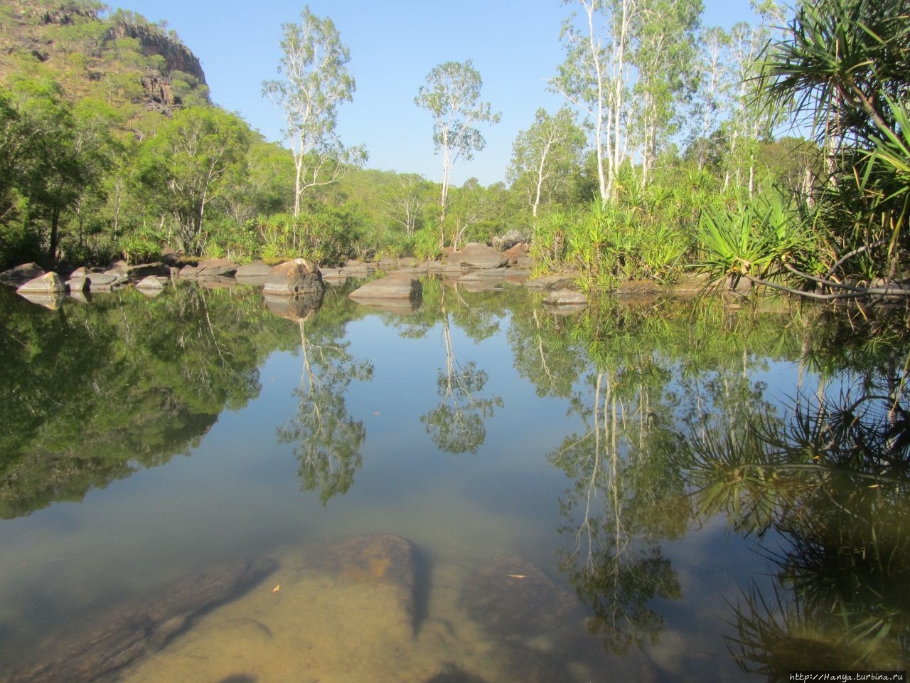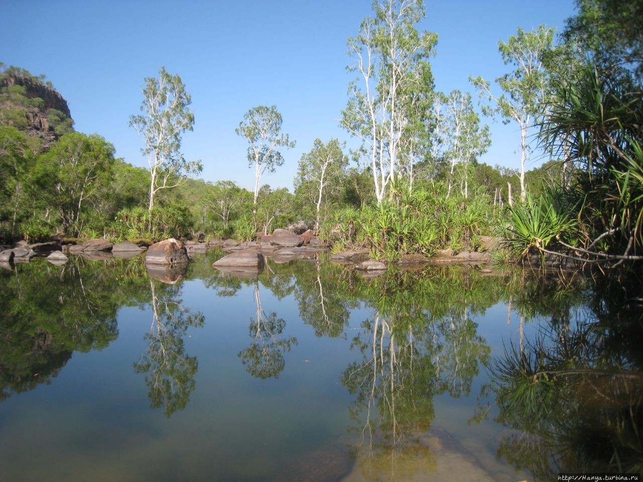 Затерянный в южной части Национального парка Какаду, он недоступен, когда вода шумит над обрывом, а дорога непроходима. Поближе к нему, как подошли мы, можно только в сухой период.