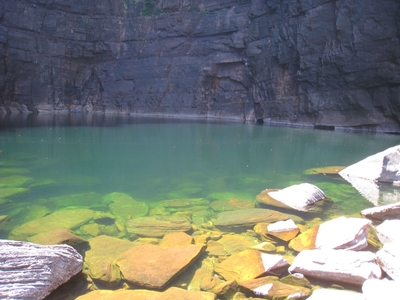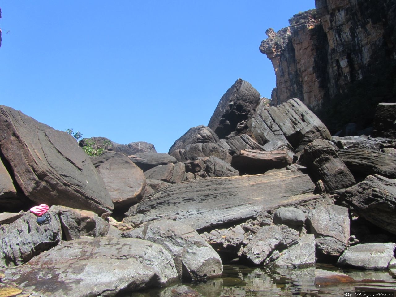 Но здесь опять надо понимать, что дна в водоеме, как такового не было, те же камни-глыбы, только в воде, что было еще хуже из-за их скользкости.