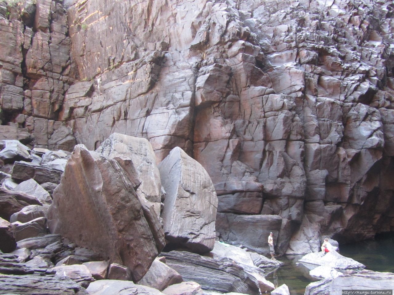 Робби переплывает чашу водоема, карабкается вверх по скале и ныряет с нее, за ним следуют наши попутчики из числа поспортивней. После плаванья, как водится, хочется есть, и сидя на скалах, мы перекусываем приготовленными заранее гамбургерами, а кусочки булки кидаем рыбкам, чтобы доставить и им удовольствие. С ужасом думаю об обратном пути, и с тяжелым сердцем собираюсь в дорогу, боясь за ноги, одна из которых уже была сломана несколько лет назад. Обратно была тяжела начальная часть пути, потом стало полегче, когда мы добрались до муссонных лесов, но все равно вместо обещанной получасовой прогулки, на дорогу мы потратили около часу. Каково же было мое удивление, когда по пути мы встретили семью с двумя маленькими детьми 2-3-х лет. Может, они тут с детства приучены к таким сложностям?