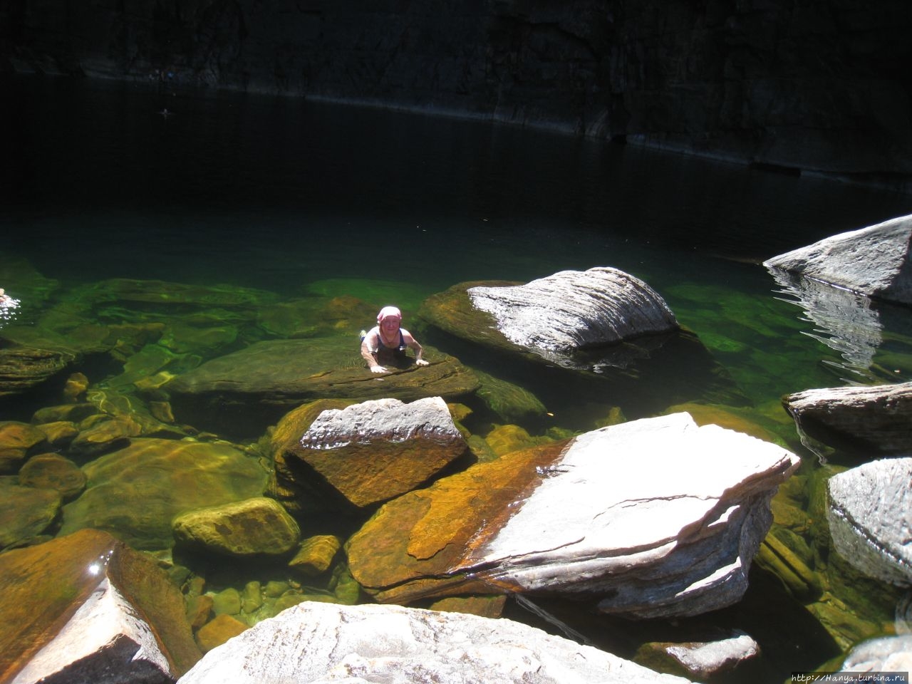 Измученные до такой степени, что нам уже было все равно «что воля, что неволя», наскоро пофотографировавшись на берегу, мы буквально сползли в воду глубокого каньона.