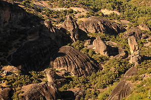 Несколько сотен каменных скал возвышаются над городком Каламбака. Образуют настоящий каменный лес. Когда то раньше сюда пришли монахи и построили на этих скалах свои монастыри.