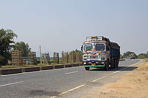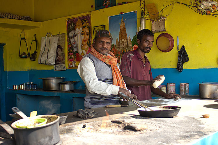 Затем появился "Великий колесный путь", который донес меня до следующего штата путешествия — Джарханда. Он ознаменовался отлетевшей крышкой аккумулятора, которую я никак не мог починить. В итоге, прикрепил ее а багажу и взял таймаут на перекус в дхабе (придорожной кафешке). Все кафе для дальнобойщиков представляют собой павильон, в котором стоят пластмассовые столы, а в углу находится кухня с тандуром — глиняной печью. На улице обязательно стоят бамбуковые лежанки, на которых спят водители грузовиков "Тата". Поэтому часто кафешки называются отелями, что вводит белого путешественника в заблуждение.