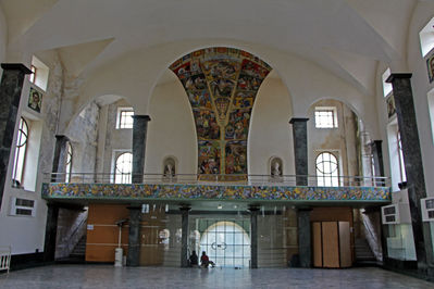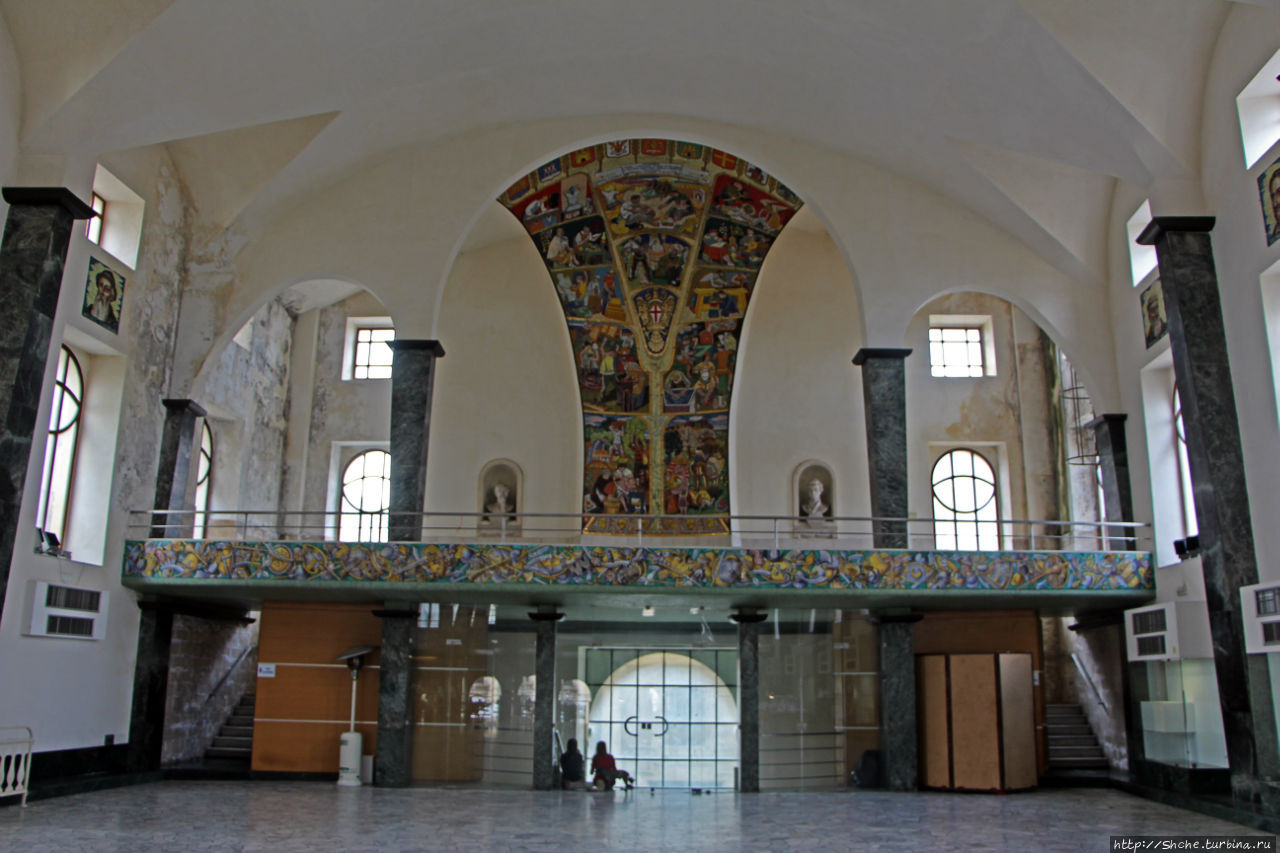Пока, в отсутствие выставок, здесь работает только бар (пиво только бутылочное), лотки с сувенирами и ... туалеты (все мы остаемся людьми с людскими потребностями)
