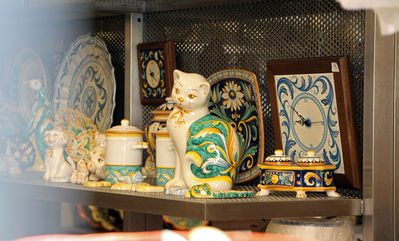 Заметили красивые изразцы, которыми отделан холл? Здесь пожалуй пора остановиться на том, чем известен город Кальтаджироне как минимум на всю Сицилию. Это глиняная посуда и оригинальная местная керамика.