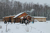 Об Этномире узнал на Турбине( Florence). В одном из турагенств Подольска купил путёвку за 1200 рублей. И одним прекрасным утром часов в десять на привокзальной площади я сел в гламурный, розовый суперавтобус и мы, не торопясь, под монотонные убаюкивающие речи экскурсовода, отправились в Калужскую область. Почти всю дорогу я проспал и лишь раз очнулся, выглянул в окно и прочёл название населённого пункта "Торутино", у указателя стояли нарисованные Михаил Илларионович Кутузов и пара солдат. В двенадцать я был уже у Этномира, а ещё по дороге, за семь километров до пункта назначения, мы проезжали Боровск и он успел мне понравится, если правда, что ангелы посылают невидимые стрелы в сердца людей, то очень может быть, что одна такая угодила и в меня, когда я вглядывался из окна автобуса в красоты города и его окрестностей. Итак, в полдень я пересёк порог Этномира. Программа пребывания была рассчитана на два часа мастер-классов ремёсел и два часа свободного времени. С мастер-классов я вскоре ускользнул за впечатлениями посильнее.