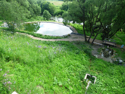 Случайно узнали, что в селе Русиново Калужской области есть весьма живописное и необычное место — долина источников. От храма Николая Чудотворца, построенного в 1836 году в честь победы над Наполеоном, можно пройти к смотровым площадкам и оттуда спуститься в долину на берегу реки Протвы.