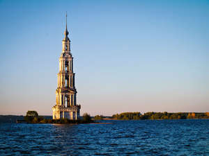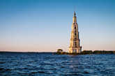 Угличу в Калязин приехал уже под вечер. Хотя, в общем-то, специально так и подгадывал. Главное, успеть до темноты. Стремился сюда, конечно же, ради неё. Затопленная колокольня Никольского собора уже давно и прочно занимает место главной достопримечательности города, являясь его символом, а попутно и напоминанием о происходившем здесь в далёких 1939-40 годах. Глядя на старые фото Калязина, сложно представить, что всё это разрушено и ушло под воду. А сколько ещё сёл и деревень постигла та же участь.