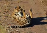 ... и был нещадно вылизан гепардом . Но на этом наша программа не закончилась. На ферме мы общалиьс с тремя прирученными гепардами, которые позволяют себя погладить, и вообще привыкли к общению с людьми. Но гепард — не собачка, не каждого удается приручить. Для гепардов, которые попали в руки этих фермеров, но так и не приручились ими, выделена большая закрытая сеткой территория, которая получила название Otjitotongwe Cheetah Park. Здесь они живут как в заповеднике, разница лишь в том, что на их территории нет копытных животных, то есть пищу они сами себе добывать не могут. И не потому, что не умеют, или разучились, ее там просто нет. Гепардов кормят фермеры, каждый вечер давая по куску свежего мяса. А когда есть туристы, то это кормление становится частью программы посещения фермы.