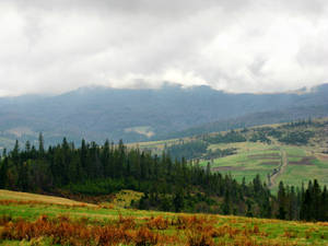 Затем мы вышли на дорогу, оказавшуюся той, с которой свернули на тропу. Дальше она шла по лугу, и через некоторое время перед нами предстал растянувшийся поперек нашему ходу Верховинский Вододельный хребет – наша цель. Часть его вершин ещё была в облаках, но виден он был довольно далеко, и выглядел впечатляюще, несмотря на относительно небольшую высоту. До этого в горах я был всего раз, в Валле-д'Аоста в Италии. По масштабности Альпы, конечно, намного круче. Но здесь какая-то совсем иная атмосфера, ощущение спокойствия, умиротворения и единения с природой. Здесь на тебя не давит нечто гигантское, и ты не чувствуешь себя жалким муравьишкой, здесь ты с горами наравне.