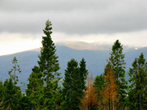 Вечерело. Для первого (нормального) дня похода впечатлений было достаточно, и мы стали искать место для ночевки. В итоге разбили лагерь на перевале между Дрогобычским камнем и горой Старостина, на пологом западном склоне у кромки леса. Пока разводили костёр, увидели как с вершины Старостины спускается пара туристов, мужчина и женщина. Далеко они не пошли и поставили палатку прямо на склоне, метрах в 400 от нас. Через некоторое время заметили как один из них (мужчина) направляется в нашу сторону. Как выяснилось, это семейная пара из Киева. Обменялись полезными сведениями. Для нас было важно знать, где можно найти воду, т.к. на хребте с ней проблемы. И Александр (кажется, так его звали) пошёл обратно. Но пошёл почему-то вдоль границы леса и вскоре вернулся к нам. Оказалось, он ходил искать воду и нашёл совсем недалеко от нас в лесу небольшой ручей, за что ему большое спасибо. Сами бы, наверно, не сунулись туда в поисках воды.
