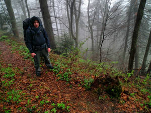 Туман всё никак не рассеивался и придавал некоторую мрачность и без того буковому лесу. :) Но теперь нас это только радовало и было хорошим поводом сделать пару-тройку годных снимков.