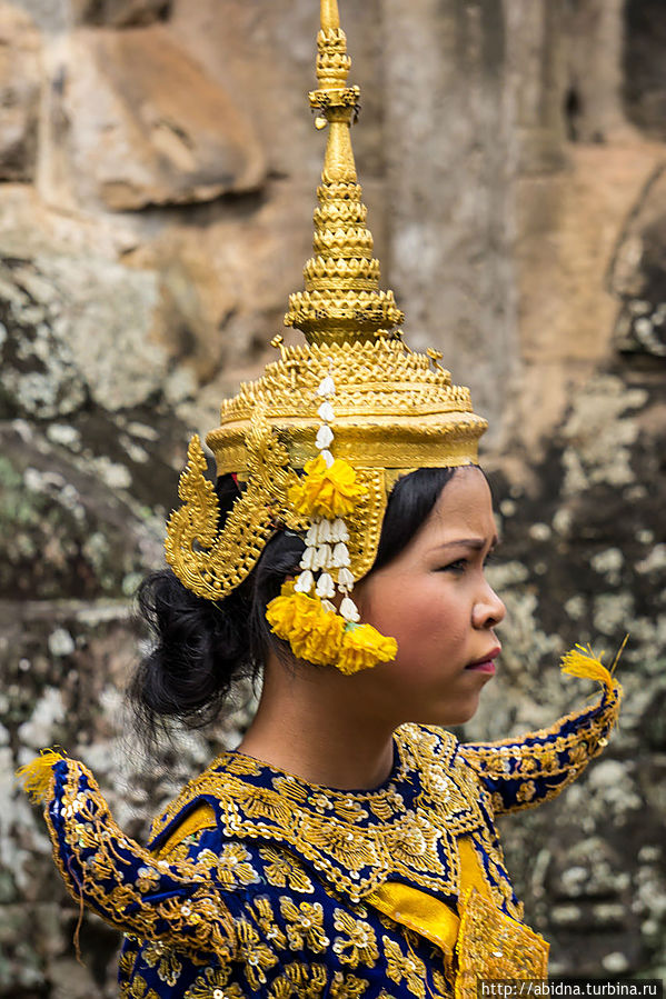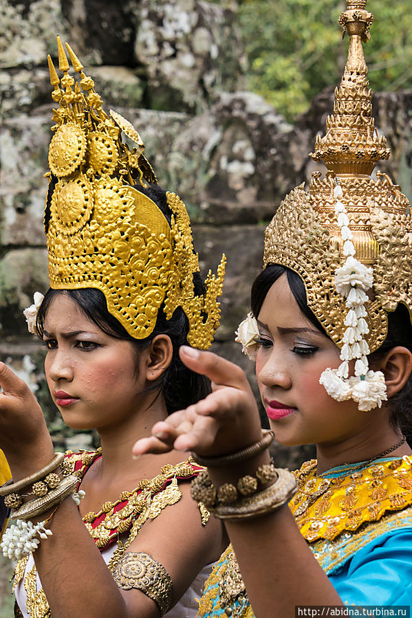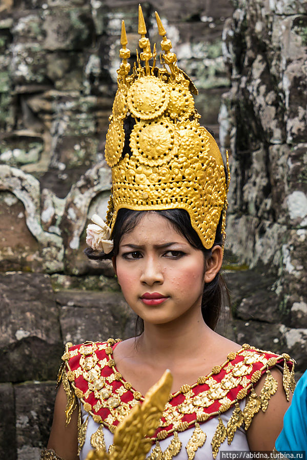 С этими девушками в национальных костюмах можно сфотографироваться прямо в храмах Ангкора