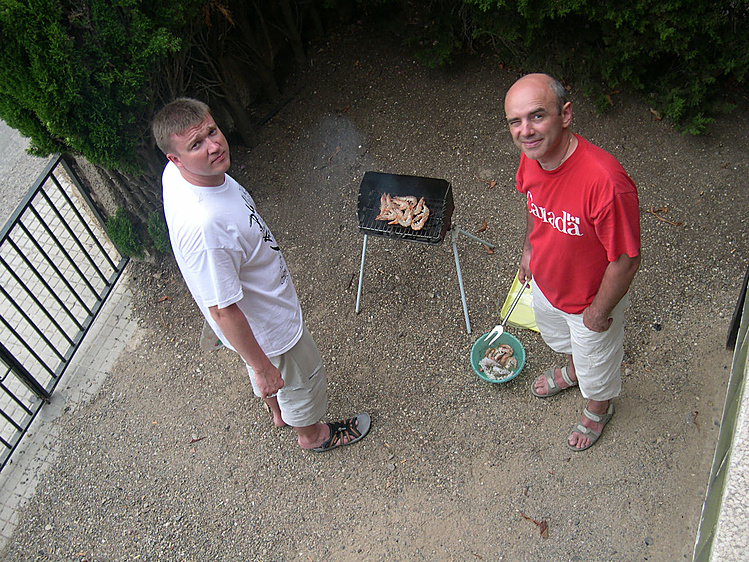 Во дворе стоял мангал, а на рынке продавали недорогие, но гигантские креветки. Мы не могли пропустить такое.