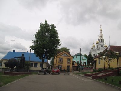 Памятник князю-основателю города рядом зубр, Беловежская пуща тут поблизости