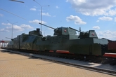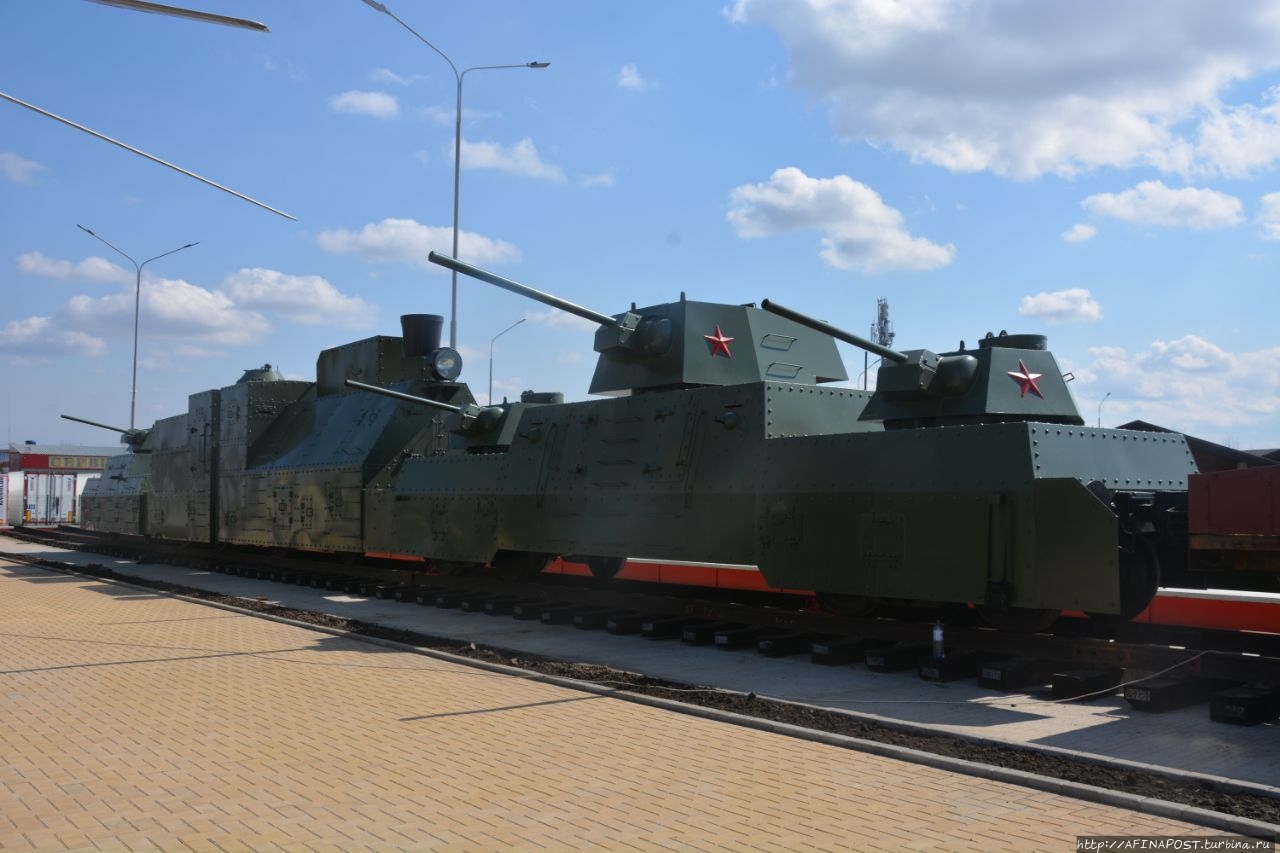 Бронепоезд-копия по точным чертежам боевого локомотива "Московский Метрополитен". Изготавливали этот уникальный паровоз на местном заводе "Ростоввагонмаш" из того же сплава, что был на оригинальном бронепоезде.