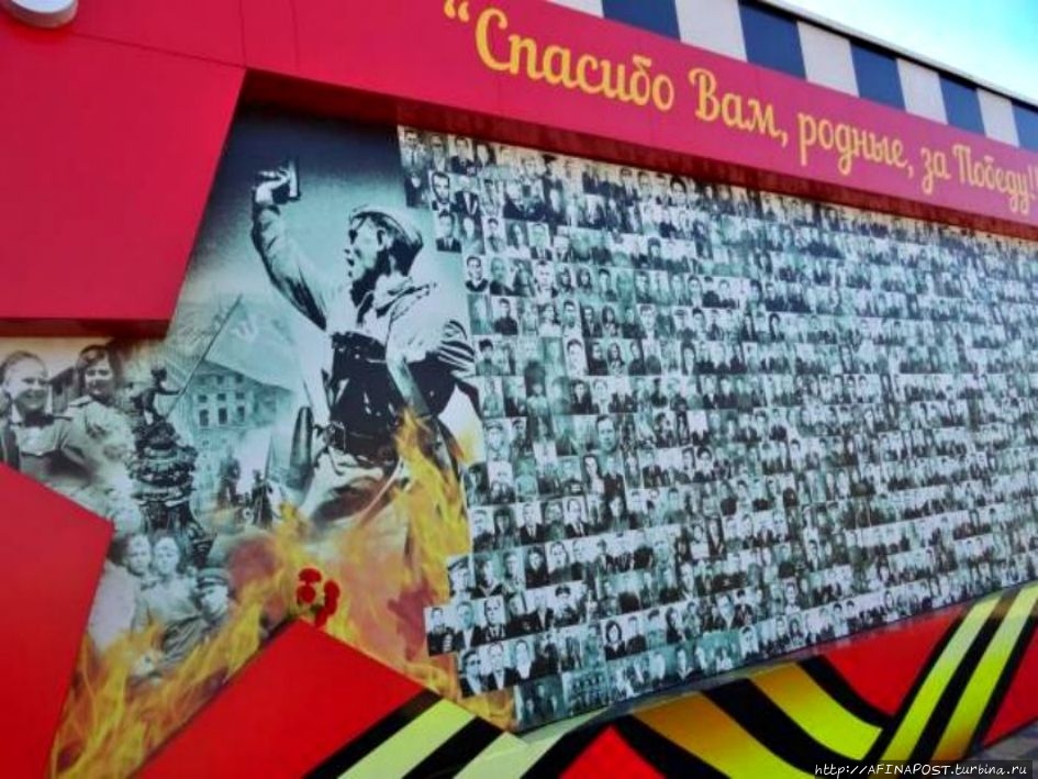 На выходе из парка — Доска памяти "Спасибо за Победу" и сотни фотографий...