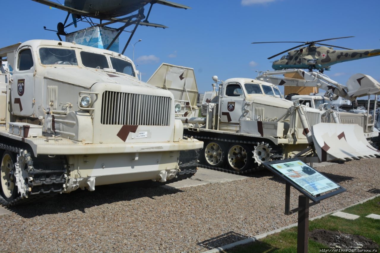 Весь комплекс разделен на зоны. При входе слева, к трассе, сначала стоят танки, потом вертолеты, самолеты и далее спецтехника, например арктический набор спецмашин, которые выкрашены в маскировочный белый цвет.