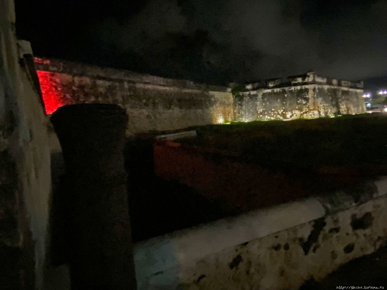 Вот рядом с один из таких бастионов, получившего имя Сан-Педро мы и начали знакомство с городом. Меняя краски, он ярко освещался в ночи, но увы, был закрыт (и даже подходы к нему загорожены).