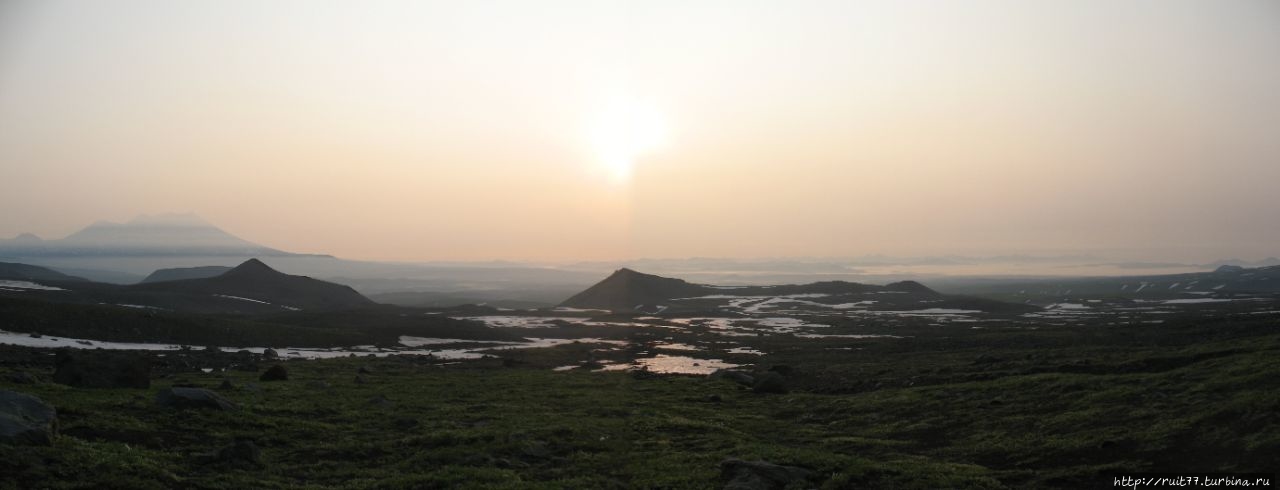Авача сегодня "газует" так, что вулканические газы застелили всю долину лёгкой дымкой.
