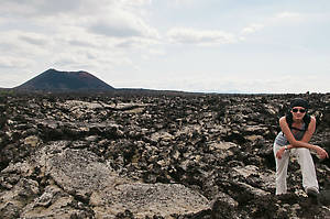 По дороге было жарковато, постепенно раздевались. И вдруг потерялась помощница гида, все встали и начали кричать, пока она на нас сама не вышла. Шли долго, около 7 км по очень неудобной местности, да и риском провалится в прикрытые пещеры. В итоге дошли и разбежались по лавовому полю, то есть осторожно рассползлись, можно только карабкатся с камня на камень с острыми выступами, они еще не успели обтупится от дождя и ветра.