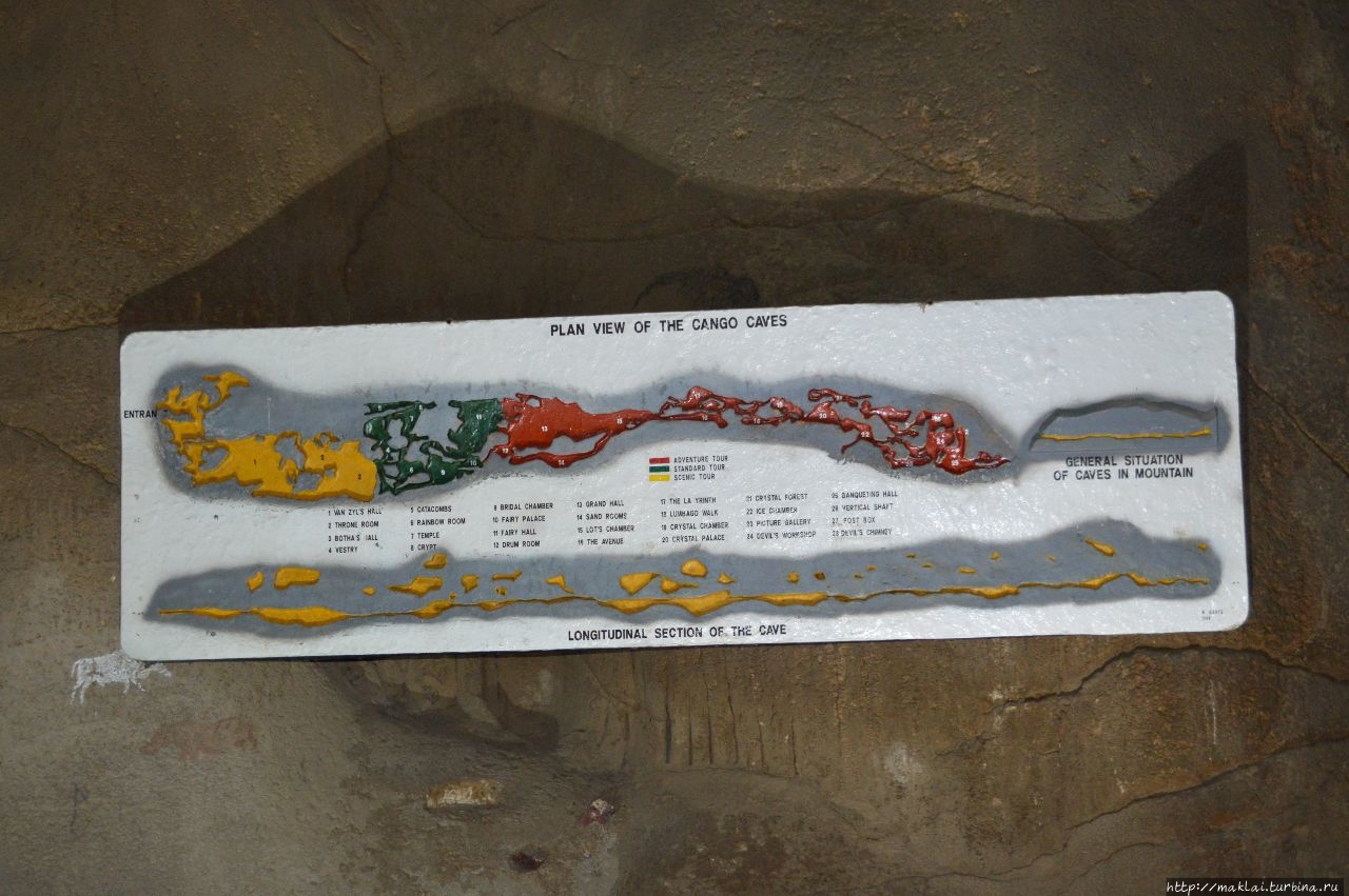 Вообще, в Cango Caves – 3 основных маршрута. Мы выбрали наиболее доступный стандартный тур, проходящий через 6 основных залов пещер, который занял около часа.