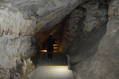 Трюк, который гид постоянно демонстрировал во время прохождения маршрута, состоял в том, что свет в очередном пещерном зале, полностью выключался, вызывая лёгкое тревожное повизгивание представительниц прекрасного пола. А затем включался, концентрируясь на каком-либо интересном объекте.