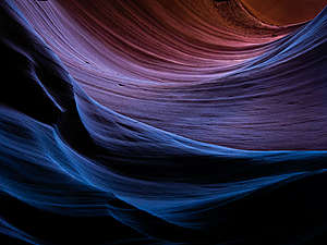 В знаменитом каньоне Антилопы мы оказались совершенно случайно — просто ехали из Долины Монументов в Зион, и в районе Пейджа увидели указатель со смутно знакомым названием. Это же оно? — подумали мы. Оно, а значит, надо заехать и добавить пару сотен фоток к тем многим миллиардам, что уже существуют в природе. Чтобы фотки хоть чем-то отличались, решено было сделать их не рыжими, а синими :)