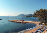 Мы поселились на полуострове, не побоявшись близости аэропорта, в первую очередь из-за того, что место находится всего в 5 км от старого города Керкиры. Однако, важным аргументом в пользу отеля Корфу Холидей Палас оказался и тот факт, что чуть ли не на его пляже расположилась "визитная карточка" Корфу — монастырь Влахерна.