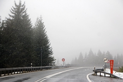 На один из поворотов сквозь туман на склонах начал просматриваться снег...