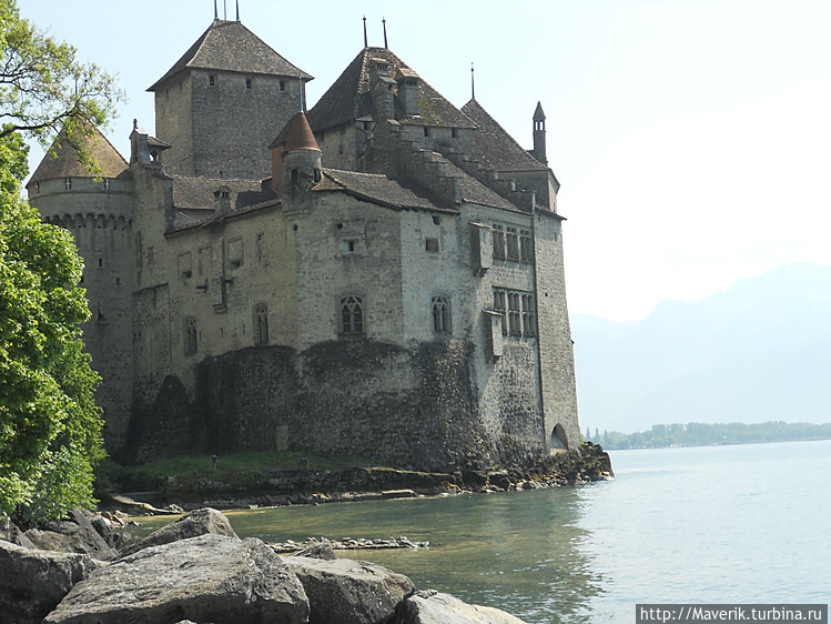 а со стороны гор, как неприступная крепость. От курортного городка Монтрё до замка можно дойти спокойным шагом вдоль берега Женевского озера за 1 час. Это всего лишь около 4-х километров.Особое место в истории замка занимает поборник церковной реформы и сторонник независимости Женевы Франсуа Бонивар, который был брошен в подземелье замка по приказу герцога Савойского. В стенах замка он томился с 1530 до 1536 года прикованный к одной из колонн. Его имя прославил лорд Джордж Байрон в своей поэме "Шильонский узник".