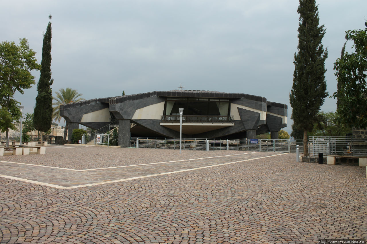 От церкви Святого Петра самое время доехать до дома этого же самого Петра. Находится он в древнем городе Капернаум. Сейчас здесь располагается археологический музей под открытым небом. Главной достопримечательностью этого места являются Белая Синагога и собственно сам дом Петра. На месте дома позднее была выстроена византийская церковь, а в наше время для сохранения и изучения раскопанных артефактов над домом Петра построили церковь в виде летающей тарелки. В самом ее центре расположен стеклянный проем с видом на дом Петра. Убранство очень простое и ничем особым не выделяется.