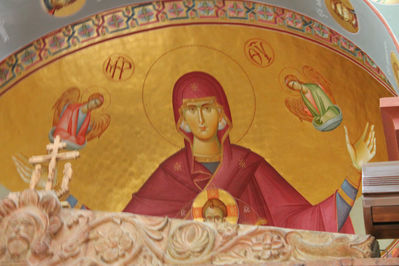 Главная святыня храма — икона Божией Матери Страстная, которая творит чудеса. Многие верующие оставляют свои украшения, чтобы получить благодать.