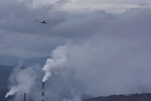 Администрация и руководство завода уверяют, что для экологии в городе сделано все возможное. Установлены фильтры и работа ведется в половину возможного. И правда, днем от завода дым идет небольшой. Однако ночью, когда я спал в местных горах под открытым небом, то часто открывал глаза и видел огромный столб дыма идущий из труб и заполоняющий все вокруг удушающим и противным дымом. Как говорят рабочие завода, фильтры очень экономятся, ввиду дороговизны, и сбросы вредных веществ проводят ночью в обход фильтров. И народ ничего не видит, внимание особо не привлекает дым ночью и все эколоические инстанции ночью не работают. Этот снимок сделан рано утром, в период сброса. Весь город закрыт стойкой вонючей пеленой смога.