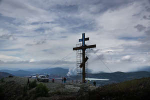 На вершине горы, прямо над городом местные жители во главе с батюшкой Карабашского храма поставили большой (порядка 10 метров), зеркальный крест. Крест очень бросается в глаза издалека любому подъезжающему к городу. Внизу, на склоне горы, выложена надпись камнями "Спаси и Сохрани".