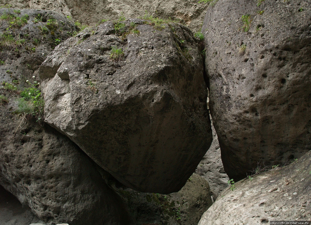 И действительно, когда доходишь до огромных валунов, скатившихся в ущелье и застрявших между стен,...