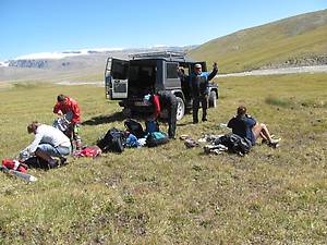 В 6:30 утра вы выехали из г. Каракола. Наша компания состояла из двух россиян и двух моих друзей, опытных инструкторов с горнолыжной базы Каракол.
