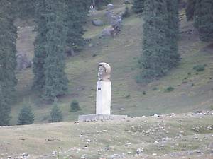 Не много из истории. Гагарин после полёта в космос посещал Киргизию, был на Иссык-Куле, и посетил это место, где залез на большой камень и это запечатлели на фотоаппарат. После на этом камне выбили его лицо и назвали камень именем Гагарина. Когда начало свою работу предприятие Кумтор, оно уже поставило памятник на против этого камня.