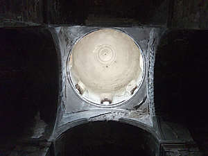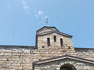 Выполнен в византийской архитектурной традиции. Представляет в плане трёхапсидное и трёхнефное крестовокупольное здание с четырьмя квадратными столбами, несущими подпружную арку и главу. Длина здания с запада на восток — 12,9 м, высота равна длине, ширина по западному фасаду — 8,9 м.