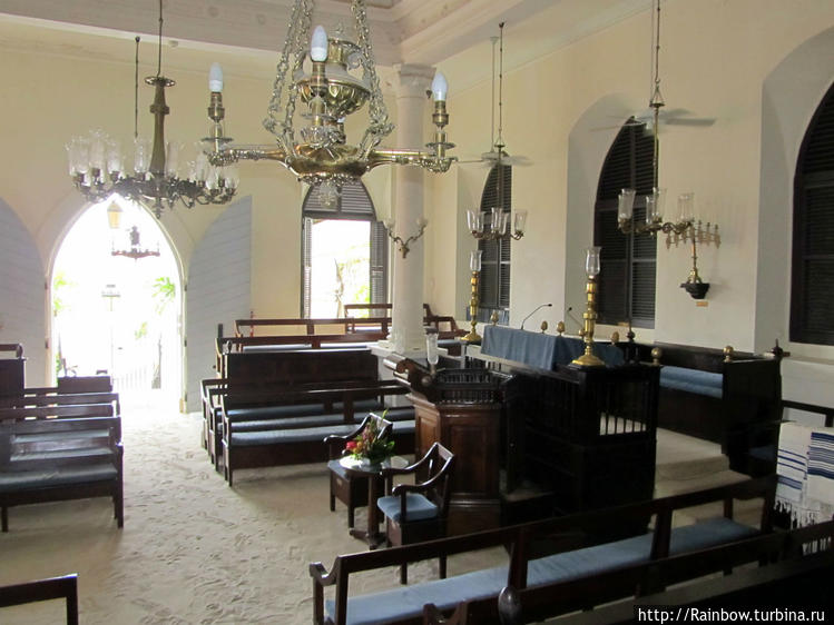 Что бы поутру приплыть на остров Сент-Томас, который принадлежит к Виргинским островам. Остров оказался очень симпатичным, в нем есть небольшая столица Шарлот-Амалия с самой старой синагогой на Карибских островах. Синагога оказалась очень уютной, по другому и не назвать.