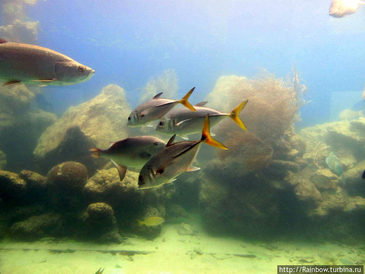 На острове есть водный познавательный парк с разными видами аквариумов, рыб, черепах, есть и подводная обсерватория, весь комплекс небольшой, но в нем можно занимательно провести пару часов.