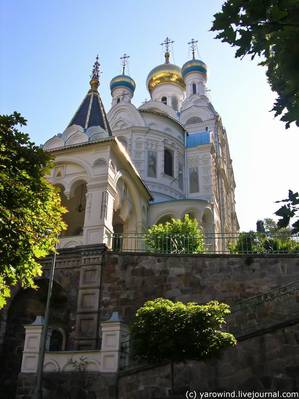 Храм поставили в конце XIXв для многочисленных русских туристов, которые любили лечиться здесь на водах. Принадлежит он Чешской православной Церкви.