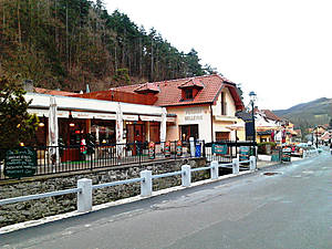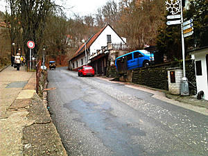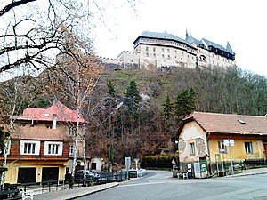 Совсем небольшой городок Карлштейн, расположенный в нескольких десятках километрах от Праги, как то сразу пришелся по душе. Основной достопримечательностью его является одноименный замок или наоборот, поселение носит имя знаменитого старинного замка- в любом случае этот ансамбль как единое целое очень привлекателен. Весь путь к замку состоит из почти игрушечных домиков и припаркованных автомобилей к ним, крошечных ресторанчиков, миниатюрных отелей и сувенирных лавок. Однако есть и продовольственные магазины, и даже школа. И еще протекает речушка. И над всем этим возвышается замок. Его видно отовсюду и все время хочется фотографировать. Он очень красив! И хочется остаться, и переночевать в одной из этих милых гостиниц: под шум бесконечного дождя как бы сладко здесь спалось...Совершенно непонятные ощущения для абсолютно городского человека