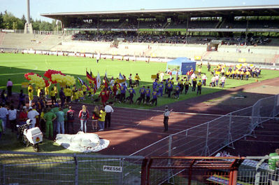 Неожиданно Ирина встретила свою бывшую ученицу с собачьей площадки в Москве — Олю. Эта девочка недавно уехала вместе с родителями на постоянное место жительства в Германию. Но для того, чтобы встретиться с Ириной и заодно посмотреть Зигер, приехала в Карлсруэ из своего Штутгарта вместе с родителями. Подошли к нам и Сильвия с мужем, чтобы поздравить с успешным выступлением. Тут же оказались и Игорь с Леной. Я достал припасенную в Москве бутылку водки, и мы распили её совместно прямо на трибунах.