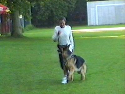 И здесь произошел эпизод, который до сих пор не даёт нам покоя. Когда собаки построились согласно порядковым номерам, к Ирине подошёл судья, и стал её что-то говорить по-немецки. Ирина по-немецки "ни бум-бум", а никого, кто мог бы помочь объясниться вокруг не было. Она почему-то поняла, что немец хочет выгнать её с ринга, так как он явно показывал ей отойти и встать в сторонке. Тогда Ирина и вовсе приняла непонимающий вид, что она "нихт ферштейн", и пусть от неё отстанут.